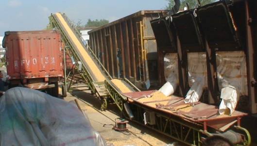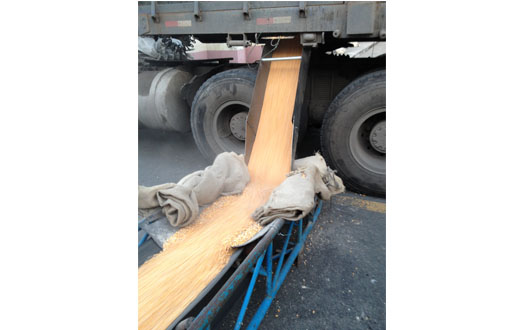 To solve all the issues mentioned above, our company offers a modern efficient and automated way for grains transportation. To save cost, we choose open wagon to transport grains, we have invented a new kind of bulk bag which can be perfectly connected to the inner surfaces of open wagon and has a tarpaulin as a cover that can protect the freight inside from water during the trip. To tell more details, when loading, firstly we place our bulk bag inside the open wagon, then set up a belt conveyor between the truck carrying grains and the open wagon, then the grains can be transported into the bulk bag automatically, after full loaded, cover and fasten the tarpaulin. When unloading, the grains can automatically flow out from the openings on one side of the bag because of its self gravity.