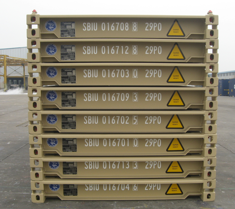 In order to meet the demand for large quantities of steel coil transport, our company develop a new kind of platform. It has 6058mm long, 2438mm width and 460mm height. Its own weight is 1750Kg, it can support nearly 33250Kg on it. There are no corner fittings holes on this platform, steel coils can be placed in the grooves, they can form a mechanical equilibrium by both sides of grooves and their own gravity.